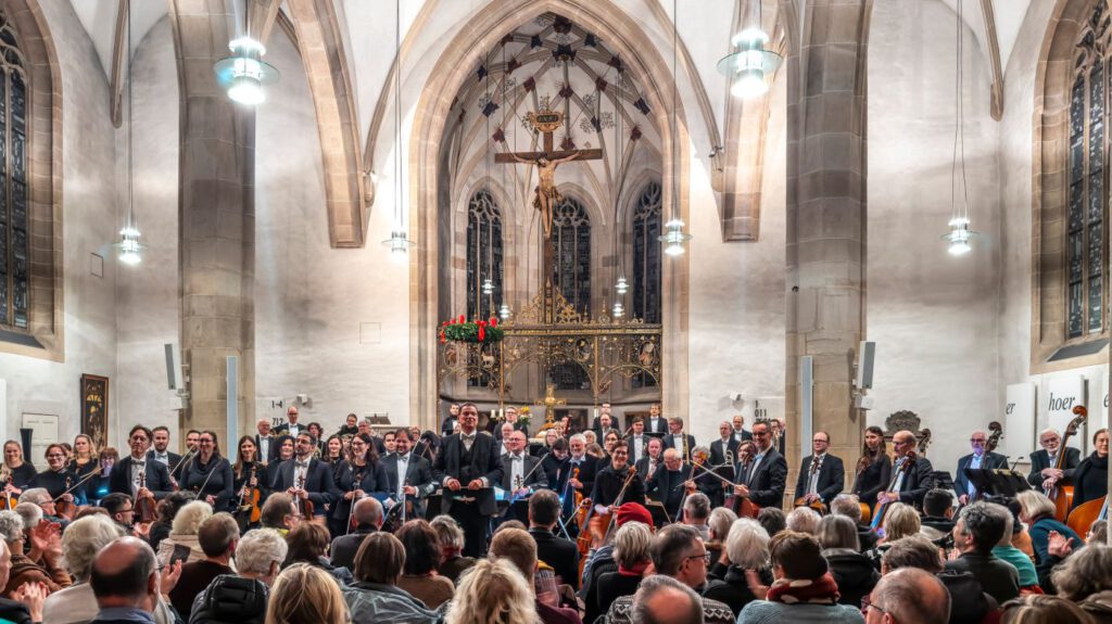 Das war unser kulturelles und soziales Highlight des Jahres: Das renommierte Daimler-Sinfonieorchester Stuttgart spielte in der Stadtkirche Nürtingen ein Benefizkonzert zugunsten des Welthauses mit Werken von Rimsky-Korsakov, Khachaturian und Prokofiev. Über 500 Besucher:innen sorgten für eine volle Stadtkirche St. Laurentius. Sie wurden mit einem musikalischen Abend belohnt, der tief berührte. Das Publikum dankte mit langanhaltendem Applaus und reichhaltigen Spenden. Zusammen mit der Unterstützung von Sponsoren konnten über 8.000 € für das Welthaus eingesammelt werden.