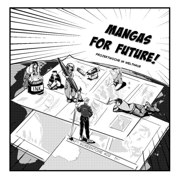 Nox J.-Ophelia Romeyke, eine Studentin der Kunsttherapie hat im Rahmen ihrer Abschlussarbeit einen einwöchigen Workshop für Jugendliche angeleitet. Ziel war es, ein Manga-Heft zum Thema Klimawandel zu erstellen. Mangas sind japanische Comics, meistens in Schwarz-Weiß gezeichnet, in denen die Personen mit ausdrucksstarker Mimik dargestellt werden. Die Teilnehmer:innen konnten mit Hilfe des gemeinsam erstellten Mangas ihre persönlichen Betroffenheit von der Klimakrise künstlerisch verarbeiten und zum Ausdruck bringen.