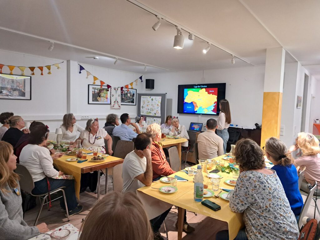 Im letzten Quartal hat die gut besuchte Länderküche Ukraine am 31.10. den Anfang gemacht. Ein großes ukrainisches Team hat uns mit allen Sinnen die Besonderheiten dieses Landes nähergebracht: ein Land das seit 2022 mitten in einem furchtbaren Krieg steckt. Die Verbundenheit zwischen den in Nürtingen lebenden Ukrainer:innen und dem Welthaus ist spürbar und sichtbar. Ob bei den Umbauarbeiten, im Weltladenverkauf oder bei Events aller Art: die ukrainische Community hat sich von Beginn an aktiv in die Welthausentwicklung eingebracht. Der von der Ukrainerin Margarita angebotene wöchentliche Maltreff kombiniert mit Deutschübungen ist mittlerweile ein etablierter Programmbaustein im Welthaus. Wir sind sehr dankbar für diese wertvolle Zusammenarbeit.